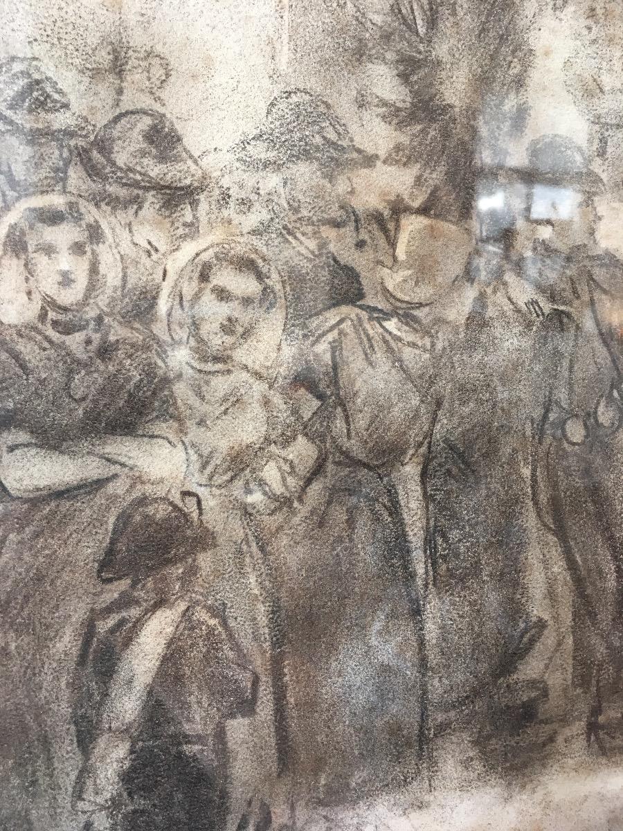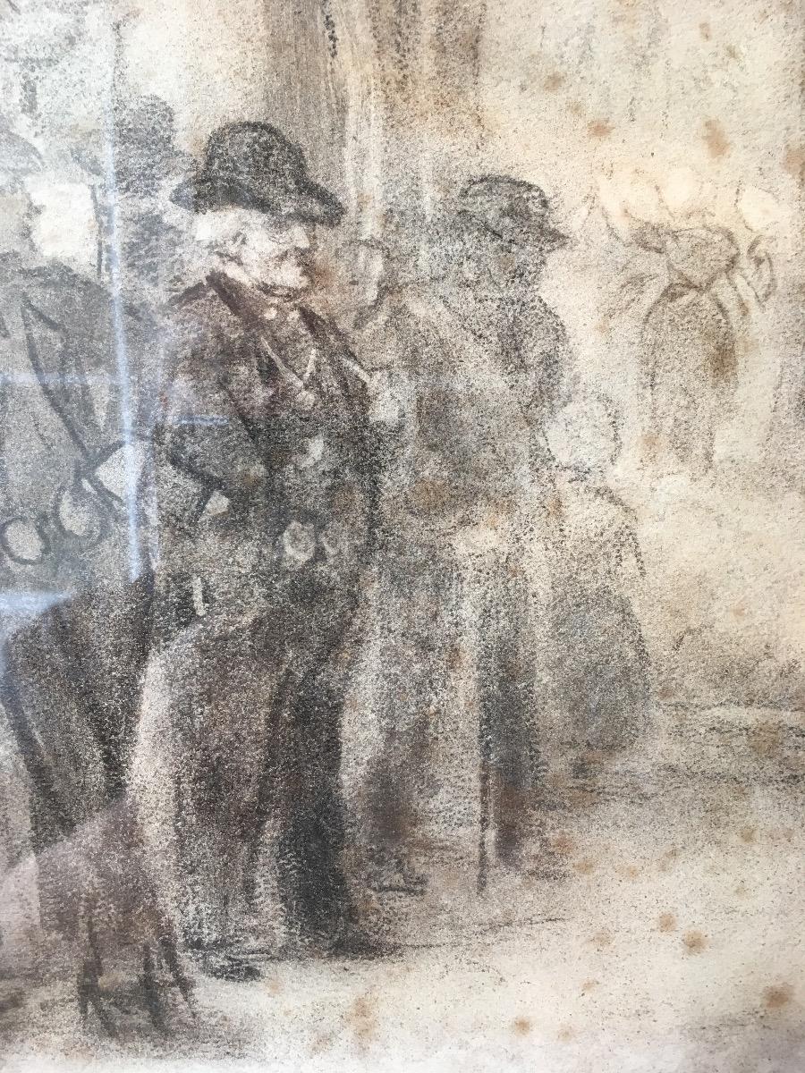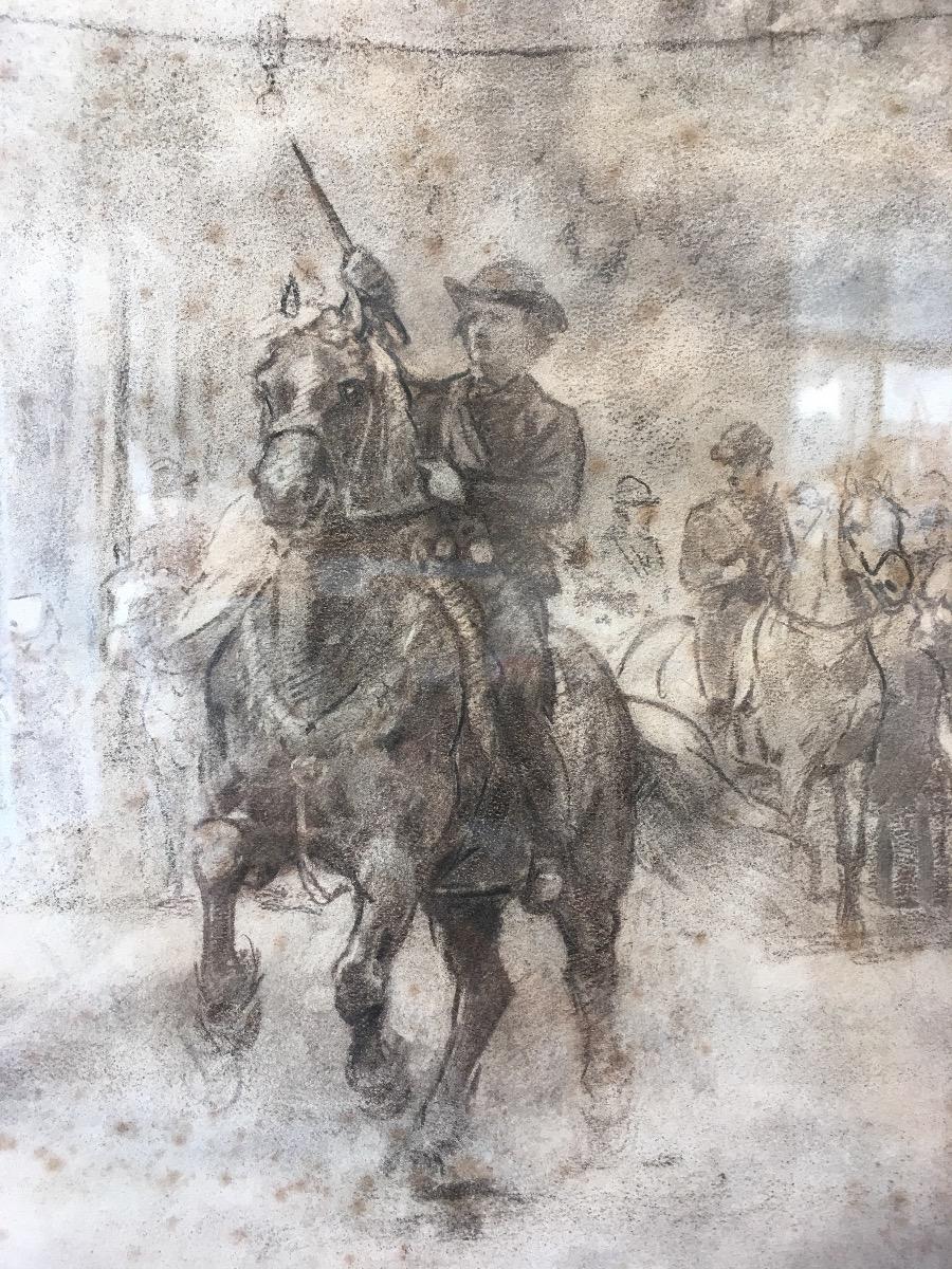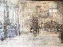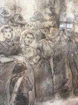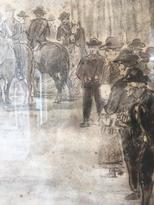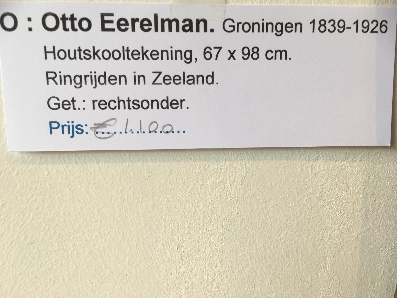Houtskooltekening 67x98 cm Ringrijden in Zeeland Door Otto Eerelman Groningen 1839-1926